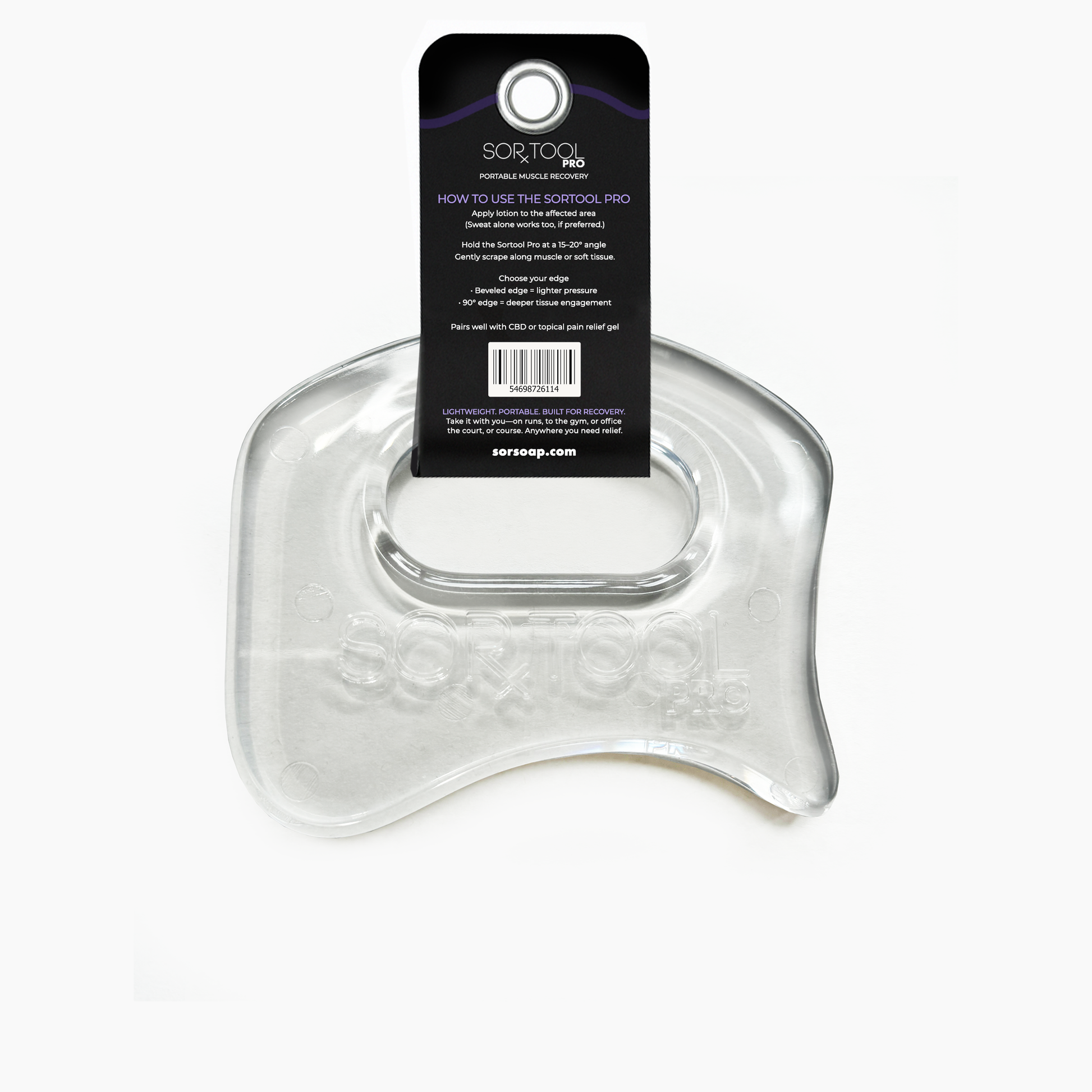This polycarbonate Graston-type recovery tool has been updated to be lighter and sleeker. Ultra-smooth and portable, the SORTOOL Pro makes DIY recovery possible on-the-go, at the field, in the gym, in the car - ANYWHERE you need it (even a tank filled with sharks).